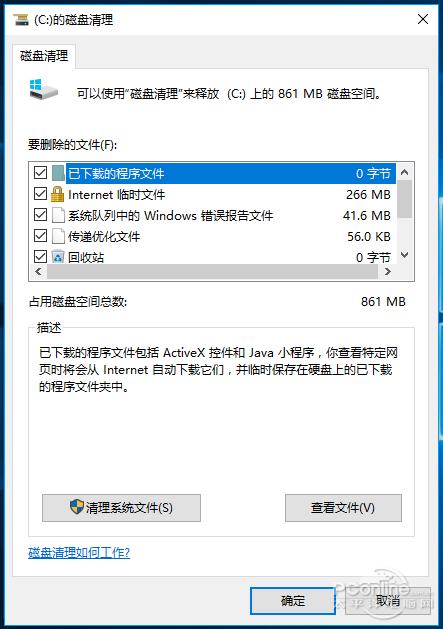 磁盘清理在弹出的窗口中,选中所有的选项,如下图,之后点击确定即可开始磁盘清理了: