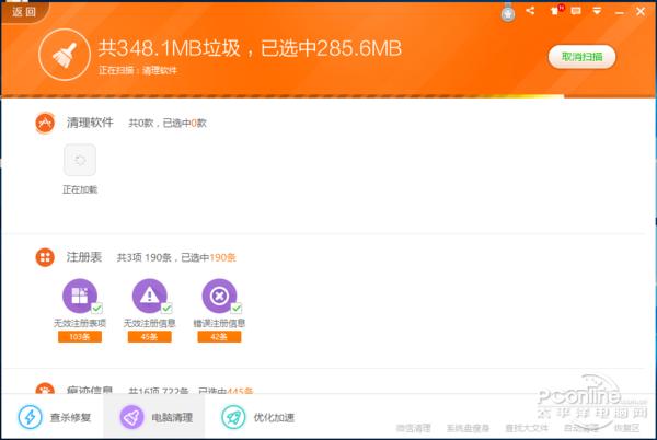 ②使用360安全卫士清理系统垃圾以及清理失效的注册表文件