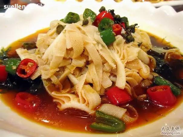 牛百叶或者毛肚(瓣胃),表面呈现大量薄瓣状,带小突起,口感爽脆,而且因为多瓣的结构和迷人的小突起,保留汁水的能力相当强,作拌菜或者涮锅使用效果极佳。不过因为比较薄,容易煮过头,煮过头就老了……(图片来自网络)