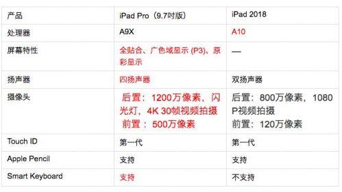 那么,这款产品和上代产品相比有哪些提升?适合哪些人买呢?现在我们不妨来一起探讨下。 1 升级重点:A10 处理器、加入对 apple Pencil 支持 和前代产品相比,新 iPad 的变化很小, 主要就是处理器从 A9 升级为 A10 和加入了对 Apple Pencil 的支持。 其他方面,基本保持原样:一样的外观、一样的屏幕、一样的 Touch ID… 几经调整后, 如今苹果的 iPad 产品策略非常明确,iPad Pro 主打高端市场,性能强、配置高、价格贵; 原来的 iPad 9.7 吋版定位下调,搭载上代处理器,屏幕、摄像头缩水,价格调到 2000 元级别,面向入门市场。 iPad 2018 搭载的 A10 处理器和 iPhone 7 同款,性能距离 A11 有差距,但也算足够强劲,在现在的移动芯片中并不显得落伍 。如果你想用这款平板电脑玩游戏或用 iMovie 剪点小视频的的话,它不会让你失望。