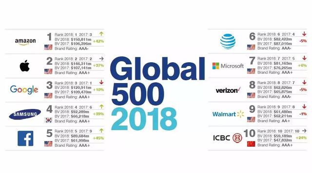 英国知名品牌价值咨询公司Brand Finance发布“2018年全球品牌500强”报告(2018 The annual report on the world’s most valuable brands),亚马逊超越谷歌和苹果,成为全球最具价值品牌。