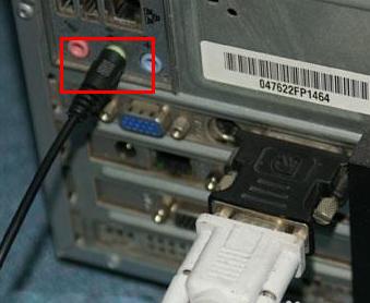 第四:是不是主机后面没插好,一般音频线都是插在第二个孔的,如下图: