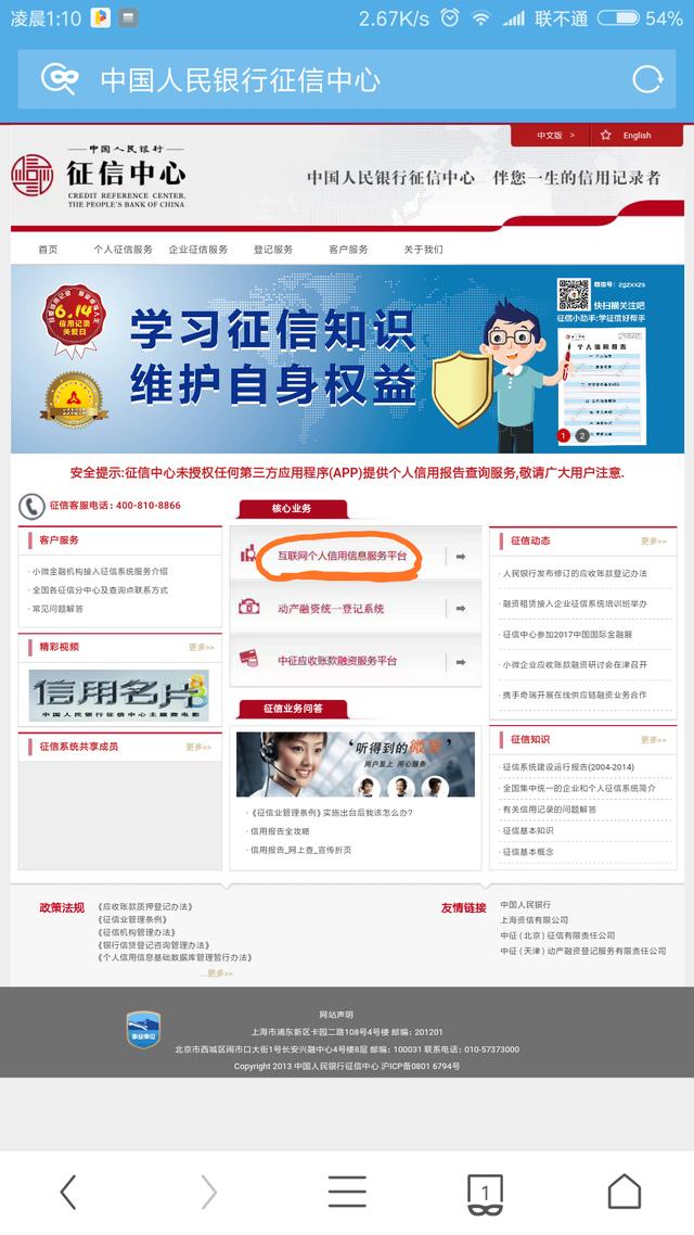 首先打开浏览器输入“人民银行征信中心” 点开官网 如下图: