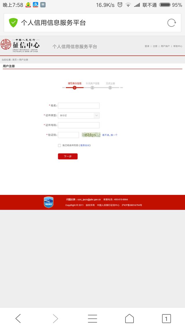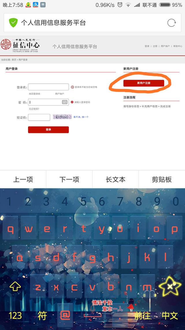 然后点击“互联网个人信用信息服务平台”(红圈标注)进入下一步注册页面。