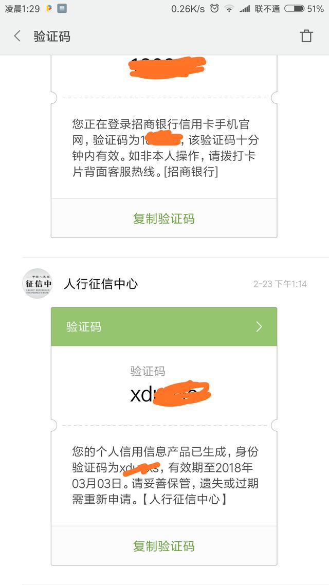 最后一步 打勾你要查询的报告后,会验证你名下的银行卡,确定是你本人验证通过后24小时内会发一条短信到你手机上。内容如下: