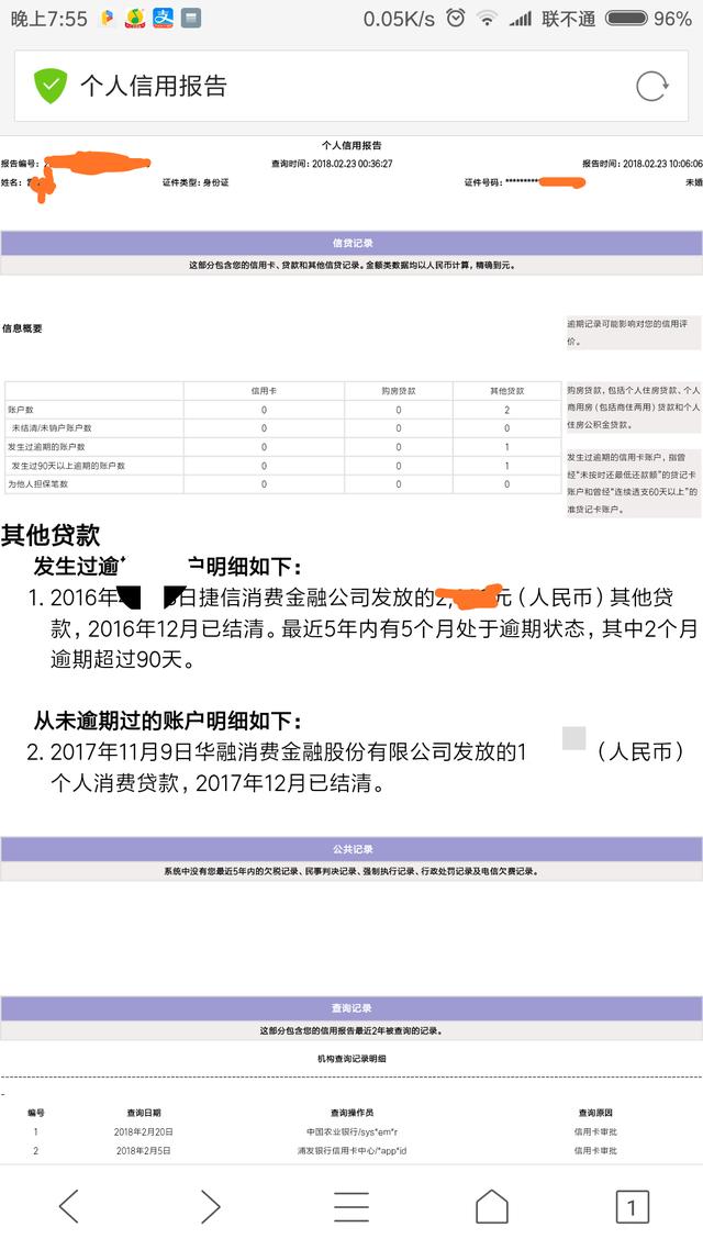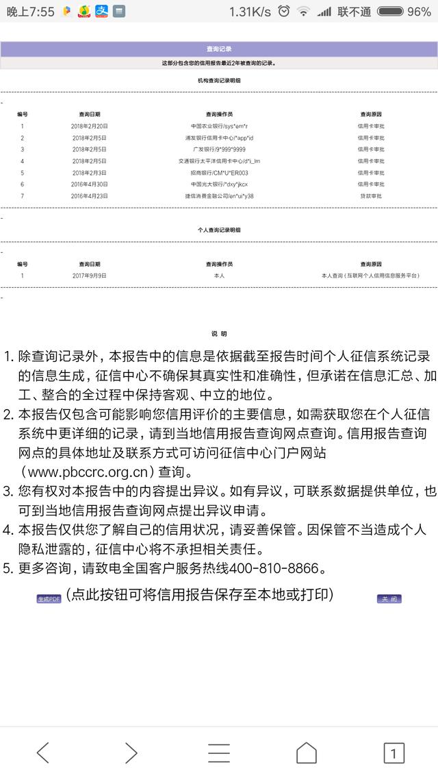 你的个人征信报告完整版已经完全打印出来了,你可以就看到非常多的信息。比如你五年内的贷款记录,逾期记录,逾期天数等! 或者什么什么平台 企业查询过你的个人征信报告等 如图,银行申批信用卡也会记录上去,你线下贷款消费如捷信,或者网上贷款申批记录也会记录上去,为期五年! 有不懂的关注私信小编,我可以尽我所知帮助大家!下方评论探讨一下吧! 希望大家好好珍惜自己都信用,将来买房买车做生意都是至关重要的!如果小编的这篇文章你觉得实用的话,别忘了点赞加关注哦!谢谢大家。 |