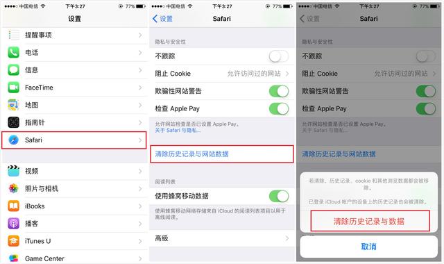 技巧二:清理Safari缓存进入【设置】-【Safari浏览器】-【清除历史记录与网站数据】确认清除即可。手机使用久了,Safari难免会产生大量的缓存记录,我们需要定时进行清理,这样也可以减少手机内存的占用。