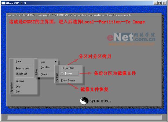 今天我们首先学习是GHOST的一键还原,选择:LOCAL-Partition-From Image按回车键确认后,显示如下