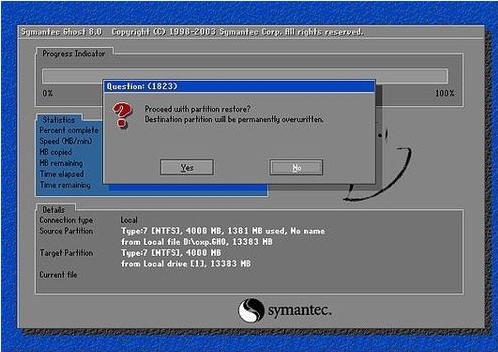提示即将恢复,会复盖选中分区破坏现有数据!选中“Yes”后,按回车键开始恢复,显示如下