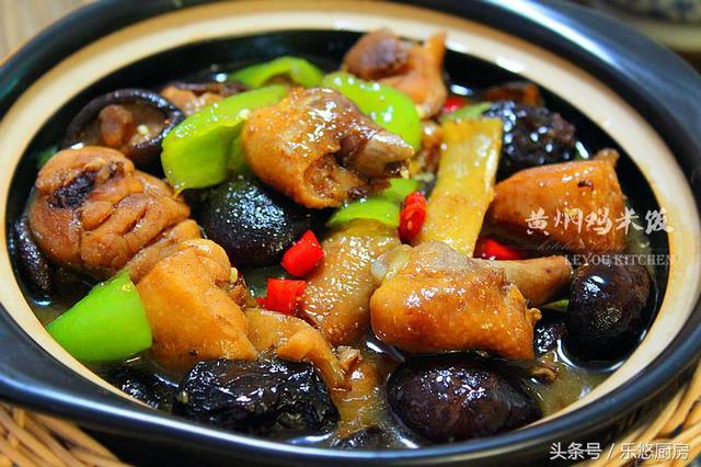 第十二步:准备上桌前,将青辣椒和红辣椒放入锅中,大火炖一分钟。 第十三步:出锅前再撒少许鸡精提味即可。 小提示 1、泡发香菇前,一定要将香菇清洗干净,尤其是沙粒什么的,一定要冲掉。 2、黄冰糖超市都有卖,如果实在找不到,就用普通冰糖或白糖代替吧。 3、辣椒的量随自己口味放。 4、最后,也可以将鸡肉先盛到沙锅中,再放辣椒炖三到五分钟,会更入味哦。 第二道:照烧鸡肉饭 这样做好鸡腿,鲜嫩多汁,鲜味十足,拌在米饭里吃特别香。再与时令蔬菜搭配,营养均衡丰富。很值得推荐~