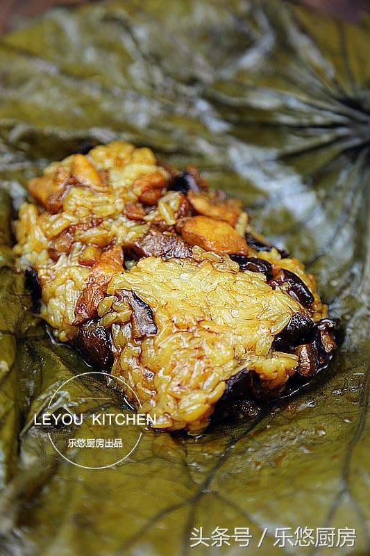 第六步:鸡肉焯水备用。 第七步:锅中倒入适量的油,油热后将葱姜放入锅中煸炒出香味。 和八步:将鸡肉放入锅中煸炒至表面微黄。 第九步:往锅中放入1勺老抽、10克左右的冰糖,然后煸炒匀均。 第十步:往锅中倒入一大碗热水,然后盖好锅盖,大火烧开后转小火炖15分钟。 第十一步:将栗子放入锅中,再放入1勺盐调味。然后盖好锅盖,继续炖煮10分钟。 第十二步:将红绿辣椒放入锅中煸炒30秒。 第十三步:将锅里多余的汤汁收干,然后出锅前撒少许鸡精翻炒均匀即可。 第四道:荷叶糯米鸡 荷叶糯米鸡,将糯米的粘、鸡肉的滑、香菇的鲜、荷叶的香,在一炒一蒸之间,相互渗透在一起。慢慢的拆开荷叶,扑鼻的清香,让人回味悠长。