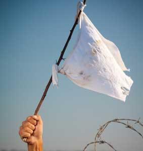 White flag:a sign that you accept defeat and wish to stop finghting.