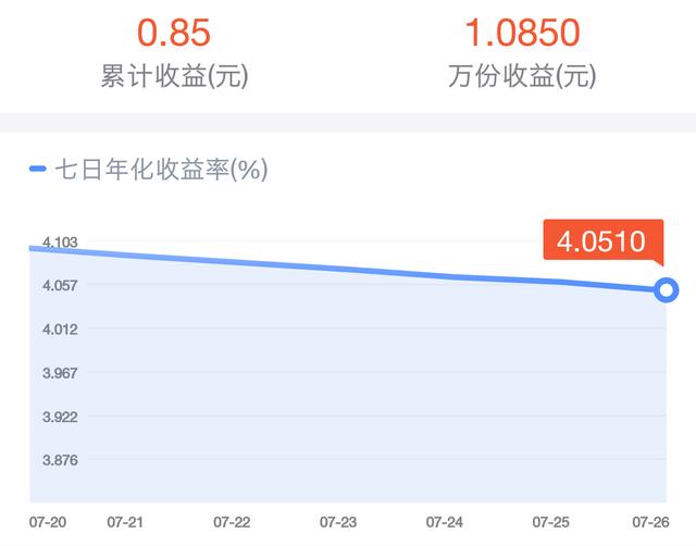 这“万份收益(元)”和“年化收益率”都是啥意思呢,带着小数点的那一串数字,背后代表的收益到底是高还是低,要怎么理解呢? 拿上图举栗子。 “万份收益(元)1.0850”是什么鬼? 它表达的意思可以理解为,你买入这款产品1万元,那么你这一个自然日的收益是1.0850元。 “七日年化收益率4.0510%”又是什么鬼? 首先,这里的“七日”是指最近七天年化收益的平均值,在其他一些产品里,有些还会展示十五日甚至三十日的年化收益率平均值。 “年化收益率”可以理解为,你投入一笔钱,扔里不动,一年以后你能拿到4.0510%的投资收益(和银行的利息不同的是,这里给出的收益率只是预期收益,而不是约定收益,原因后面聊)。 依然按照上面那个例子,一万块钱放一年,可以获得10000x4.0510%=405.1元。 有些时候,产品说明里只给出了“年化收益率”而没给出“万份收益”,而强迫症的宝宝们又想知道它的“万份收益”到底 是多少,怎么办呢? 别怕,我们来换算。 在不考虑复利和收益波动(因为公布的是七天的平均值,而不是某一天的准确值)的情况下,可以简化的粗略计算为: 年化收益率=万份收益x365÷10000 万份收益=年化收益率x10000÷365 正如你们看到的,“万份收益”和“年化收益率”几乎每天都在变,这是因为货币基金所投资的国债,央行票据,同业存款等金融工具的价格每天都有波动。 一般来讲,季度末,年末,节假日临近时,市场上的资金紧缺,货币基金的收益会上涨,所以,反映收益高低的“万份收益”和“年化收益率”这两个数据也会相应提高。 所以说,“现在的收益不代表未来的收益”,现在的“万份收益”和“年化收益率”是多少,也不会代表未来就会是多少。所以说货币基金的收益会存在小幅波动,在极端的情况下也不排除有负收益的可能性,但这种可能微乎其微。 对于家庭理财来说,货币基金是一种几乎可以取代银行活期存款的好途径。 提醒你唯一需要注意的是,货币基金的赎回一般都是T+1,也就是发起赎回后的下一个工作日到账,而不像银行活期存款那样随用随取(现在有些产品已经可以实现赎回秒到账了,我们之后再聊),在急需用钱的时候可能无法及时拿到应急资金,这个要着重注意一下。