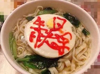 中国——长寿面 中国人过生日是非常讲究的,在以前没有蛋糕的时候只要家中有人过生日,就会在早上煮一些鸡蛋,中午的时候煮上一大碗长寿面让家人享用,长寿面寓意着健康长寿的意思。