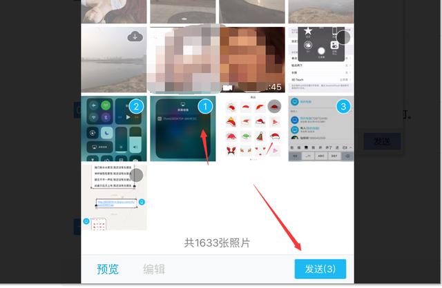 进入后你就可以从相册里选择你要传到电脑的照片和视频,点击发送即可。