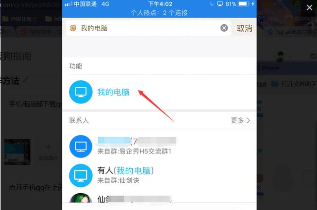 点开手机qq在上面搜索框输入:我的电脑,点击搜索。