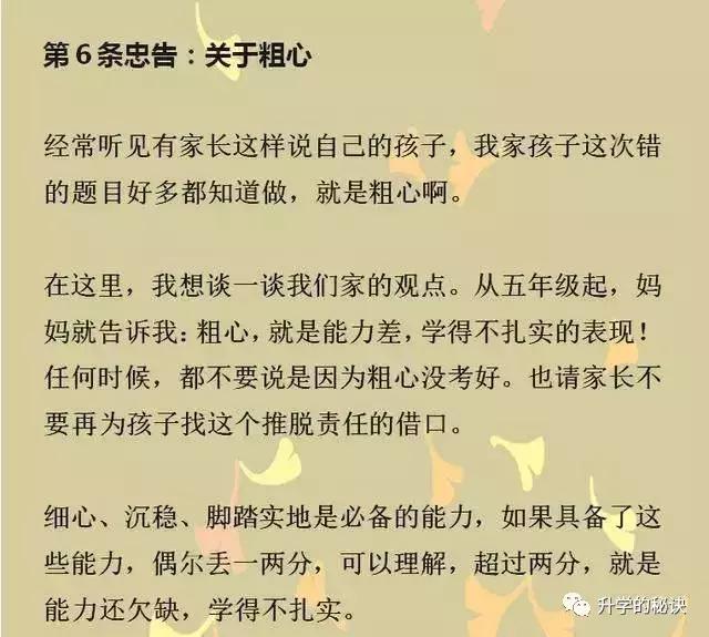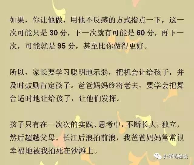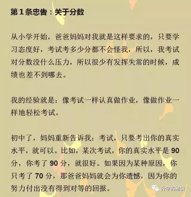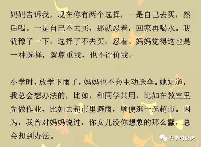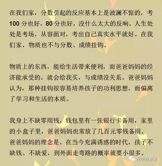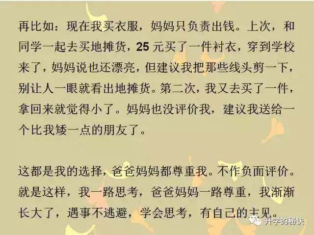 在成长的道路上,没有哪个孩子单靠自己,就可以随随便便的成功,在学习之上都会有苦恼的时候,也会有想放弃的时候,这个时候,孩子永远的避风港湾,家长的作用就逐渐的凸显出来。 家长是孩子的第一任老师,家长的思想品质,文化修养,性格情绪,兴趣爱好都无时无刻地对孩子产生着影响。所以其实我们不难看到,家庭教育对于一个孩子的影响。 而家长如何去教育孩子,如何成为孩子坚实的后盾,也是让家长最头疼的事情。说得重了,怕伤害孩子。说得轻了,怕起不到一点作用。说得多了,又会惹来孩子的烦。很多家长诉说自己是明明那么爱孩子,孩子却像不懂一样,一直跟家长置气。 归根就底一个原因,家长不明白孩子的内心,而孩子也不明白家长的内心。 其实孩子最需要的是三点,尊重,信任与支持。当然,孩子,最了解孩子的内心,接下来,我就分享一位以高分考入清华的学霸,她的心路历程。她对于父母对自己教育的理解,我相信,会对家长朋友有一定的借鉴作用。