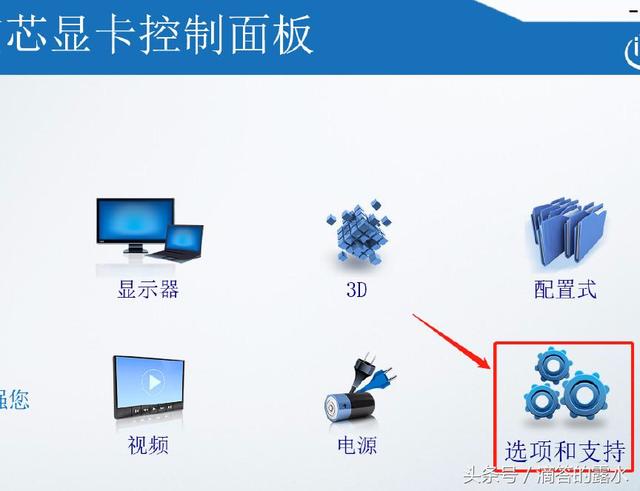 4.集成显卡的更简单了,直接找到集成显卡控制面板点击”选项和支持“就可以查看了