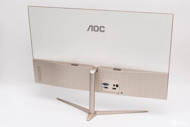 外观:在轻薄窄边框的风潮之下,各大厂商显示器的外观也越来越像。I2789FH8外观的识别度主要在于修饰纹理的搭配。因为边框很窄,所以正面基本只剩下面板,背面花样更多点,整体以香槟金色、白色搭配马赛克图案设计,搭配自然不突兀,整体风格应该是一如既往的延续AOC刀锋系列风格。
