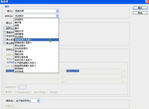 批处理面板 打开文件>自动>批处理,选择好源文件(要处理的文件),和目标文件(处理好后输出的文件)。动作选项就是选择要使用的都工作,点击确认即可对文件进行处理。 |