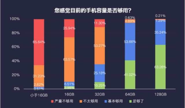 日前,ZDC公布了一组调研数据,调研数据显示用户对手机容量的需求越来越大,32GB已经被普遍认为不够用了,64GB存储已经无法满足用户的使用需求,128GB才被大部分用户认为够用或者基本够用。 为什么人们对手机容量的需求会如此膨胀,多大闪存才够用呢?我们来分析一下。