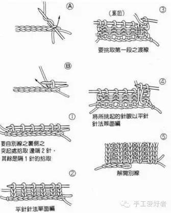 围巾的织法:织围巾怎么起针(图解) 二、使用棒针与别线(锁针) 起针(之后织低针平编)