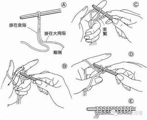 围巾的织法:织围巾怎么起针(图解) 四、运用棒针及用手指与原线的起针法: 平织/平编起针法