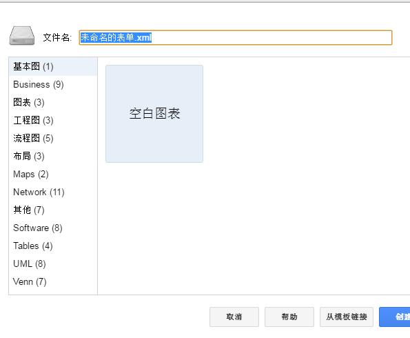 四、单击创建新图表按钮之后,可以在左列的流程图素材中选择现有的素材,也可以单击空白图表自己重新制作。