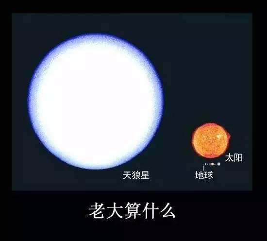 这个时候,整个心情有点不好了! 地球在太阳面前已经是一粒砂子,真的灰常担心太阳老君一发怒,吹一口气地球就不见踪影了! 可是,我们接着往下看,看我天狼星!没办法知道比太阳大多少了,天文数字,算不出来,总之大很多!