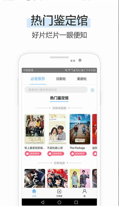PS:想要播放的任意视频提供多个免费的视频源供你选择,这是比较贴心的功能,十分强大;这款软件是个人比较推荐的,不仅因为软件没有任何广告,更因为软件视频的高质量和贴心的功能。 二、必看影视 这款软件与第一款软件一样同样是没有半点广告。 这款软件主要的特点是整合了很多许地方的资源,并且免费提供观看。而且软件日剧、日漫资源较全,同样收纳了很多美剧,韩剧,国产剧等等,值得尝试。