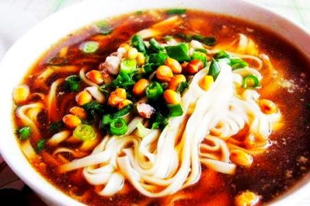 黄豆面是云南丽江特色小吃。在又滑、又筋道的面条中放入被油炸的喷香酥脆的黄豆,然后加上葱、辣子、油和香醋。汤底酸酸辣辣,非常开胃。不过最初的配料并不是黄豆,而是几块油炸的猪皮和两三尾小鱼,加黄豆是长期演变而来的做法。许多人还喜欢加入一些炸得脆香的花生米,削上几片咸而不腻的火腿片,就着一些嫩绿的葱末儿,就成了这一碗喷香的火腿黄豆面。黄豆面可算丽江第一面。面条半透明,祖传秘方做成。