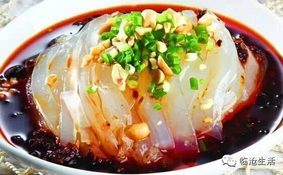 “丽江凉粉”是传统小吃。味鲜美、韧性好,可口、价廉。原料主要有鸡豌豆、韭菜、绿豆芽、花椒油、油辣子、炒火麻子面、醋、酱油、姜汁、蒜泥、香油、盐等。制时先将鸡豌豆用冷水泡一夜,待豆泡软后磨成糊状,滤渣后把桨煮沸,再放进少许生桨或小粉搅拌,煮成糊状成黑色,这时盛入盆盘之类器皿中使其冷却即可成为凉粉。吃时将凉粉切成铜钱厚,1厘米左右宽的长条,放在碗内加上事先制作好的凉韭菜、绿豆芽和各种佐料,调料拌匀即可食用。冬天切成块用锅煎黄、热食。还可做凉粉炒韭菜、炒腌菜等多道菜肴。