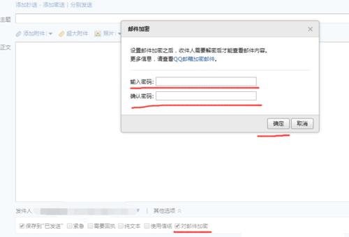 3、在下方勾选【对邮件加密】,然后输入一个密码,点“确定”即可;