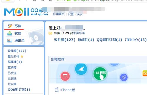 1、首先,进入QQ邮箱,单击左上角的【写信】;