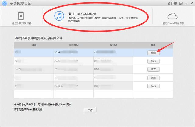 在进入功能选择界面后,选择想要查看的相应备份,等待设备扫描完成后,你就可以看到通过iTunes备份后的数据了