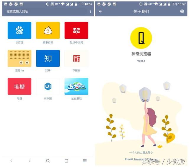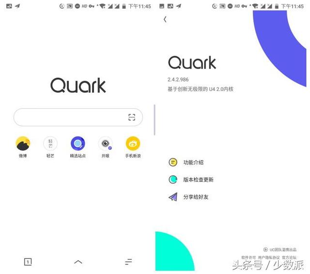上篇,我整理和测试了六款来自国际大部队的 Android 浏览器,包括大热门的 Chrome、支持丰富扩展的 Firefox、主打隐私安全的 Firefox Focus、颇有历史底蕴的 Opera,以及后来者 Microsoft Edge、Yandex。 除了国际大厂出品的产品外,国内开发者也在 Android 浏览器品类下发力,在保持简洁设计的基础上,它们希望寻求提供更多差异化的功能。这次我挑选了五款 Android 国产浏览器,一起来了解一下它们有怎样的表现,究竟有哪些亮点功能。 夸克:卡片风格 + 神奇的下载效果首先登场的是被不少人「吐槽」的 夸克浏览器,网上有朋友抱怨夸克经过近两年(2016 年 10 月发布了第一版)迭代更新,安装包体积是越来越大,甚至有反映说有些网站不能在夸克上打开(其他浏览器却能正常打开)。在我的使用体验中,我还没有碰到这些问题,夸克横空出现为当年浏览器产品界带来了一阵清新的风格。