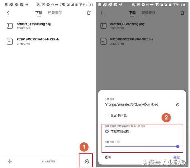 神奇的下载效果 使用夸克下载网盘资源有着神奇的效果,官方号称支持多线程加速、多任务并行的特性,在采用默认的下载选项时,下载速度大约在 300KB-600KB/S 的区间内。如果要实现提速下载的话,按照下面的图示调整下载线程: