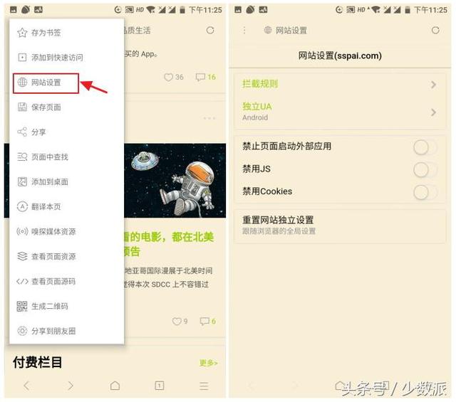 为每个网站设置不同的浏览策略 X 浏览器支持对每个网站设置单独的浏览策略,比如打开知乎网站后,点击浏览器界面左上角的按钮,选择「网站设置」,可自定义广告拦截规则、切换独立 UA、禁止页面启动外部应用、禁用 JS、禁用 Cookies,将 UA 设置为 ipad 或者桌面后,可以突破知乎查看全部回答时跳转至 Apps 下载页面的问题。同理,运用不同的设置策略,可以突破 bilibili 在手机浏览器六分钟视频时长的限制。