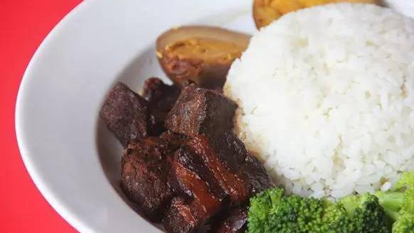 卤肉饭中的卤肉在卤制过程中添加了药材,口感浓郁。选用偏瘦的五花肉,而且很大块,吃起来十分过瘾。新加坡鲜虾面的口感偏清淡,面也同样是新加坡进口,口感鲜香爽滑。喜欢咖啡的鲜粉儿可以尝尝鸳鸯奶茶,马来西亚红茶和咖啡的组合使得两种饮品的香气巧妙的融合在一起,甜度适中,口感丝滑。