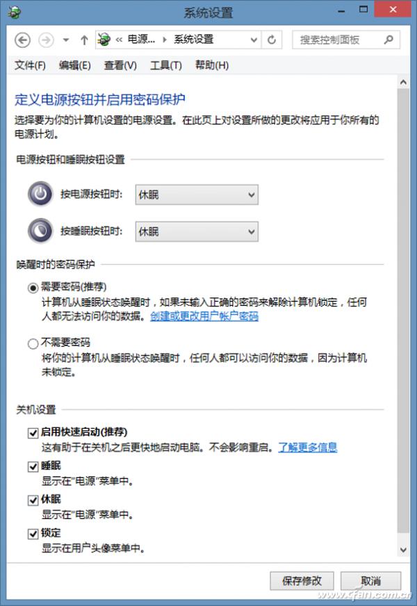 小提示: 睡眠和休眠是为分别为暂时离开和长久离开电脑而设立的两项关机选择。共同点在于都可以保留操作环境;不同点在于睡眠需要一点电力维持,而休眠则是完全切断电源。 4. 关机与重启的不同 “关机”和“重启”表面看是两个不同的任务,前者听起来是完成工作后才需要关闭电脑,后者看起来是还需要继续工作(只是可能因为系统缓慢或有其他需要才重新启动一下),但在Windows 8环境下,它有需要我们值得注意的地方,那就是当我们安装了系统更新文件,或者对软件配置进行了重设之后,如果环境要求我们重新启动系统,而我们又开启了快速启动选择,那么选择“关机”后再加电重启与直接选择“重启”命令重启的效果截然不同。后者可以完成系统更新和软件更新,而选择前者则会维持原来的状态,系统和软件得不到更新。因此,虽然我们选择关机后人为重启了电脑,但系统或软件环境却没有发生改变。由此看来,在这种情况下,只有选择“重启”命令进行的重启才是真重启,而关机后重启则是“假重启”。如果遇到系统软件更新不能发挥作用的情况,就要从这里来考虑了。 小提示: 快速启动设置不适用于“重新启动”。我们需要执行“关机”命令,然后再次启动电脑才能使快速启动生效。默认情况下,在Windows 中快速启动处于启用状态。如果关闭“快速启动”功能,则关机重启和选择“重启”重启差别不大。注意,设置快速启动需要在电源设置窗口中点击“更改当前不可用的设置”选项。