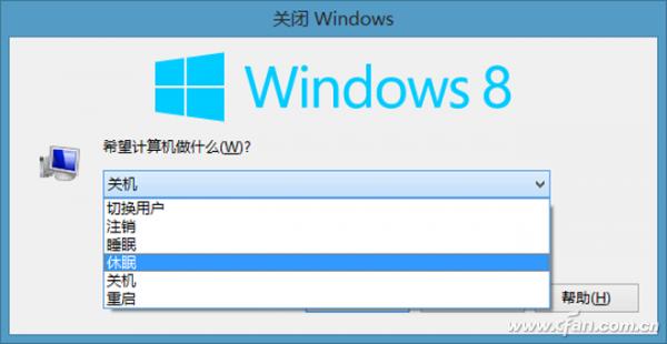 在电源管理支持和所有关机模式都开启的情况下,如果在Win8桌面上按下Alt+F4组合键,我们可以看到如图1所示的选择菜单窗口。菜单中出现了6种关闭当前系统的方式:“切换用户”、“注销”、“睡眠”、“休眠”、“关机”、“重启”。在这些选项中,有些比较好理解,争议不大,如“切换用户”和“注销”两项。但随着系统升级换代,其余的4个选项有了新的内涵,因而不少用