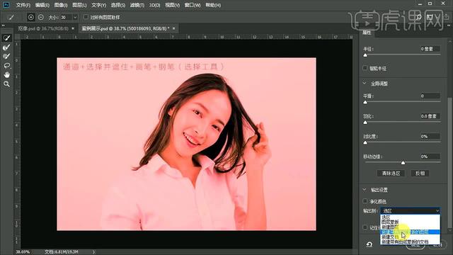 3、【选区工具-点击上方-选择并遮住】(输出到带有图层蒙版的图层)。