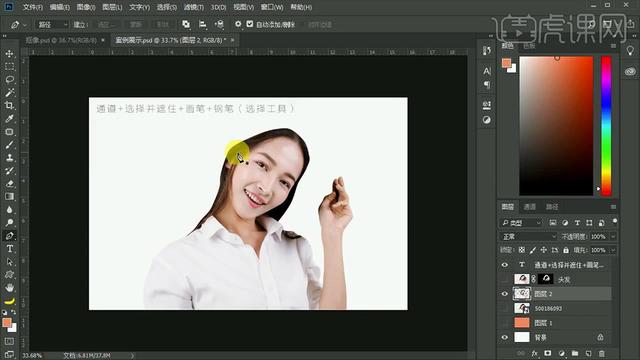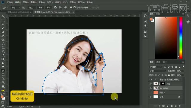 5、【图层命名为头发】使用【钢笔工具(使用方法操作软件操作基础视频)】绘制‘清晰轮廓’