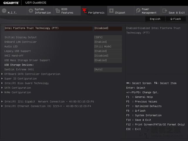 系统信息页面 3、peripherals选项中,这是BIOS特色功能,我们可以在其中调整系统优先启动顺序,以及针对某些系统的特殊功能和安全选项等。