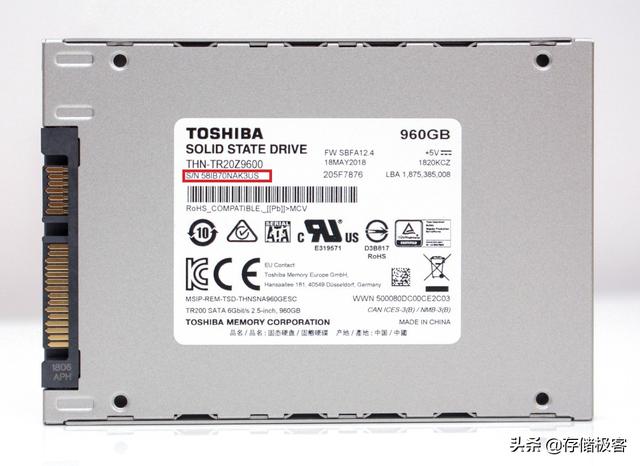 当然硬盘序列号也有不靠谱的时候,有些山寨盘的序列号干脆就是固定一个数值,一批硬盘的序列号可能都是一模一样的,让人哭笑不得。下图是东芝TR200固态硬盘标签上的S/N序列号信息,与CrystalDiskInfo识别结果一致。