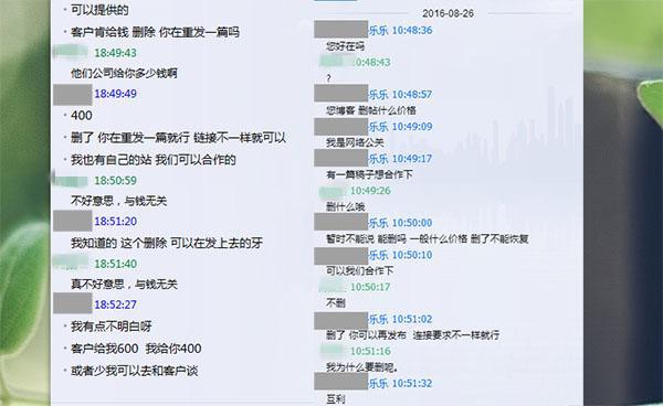 备注:对第三方的信息,给保护处理,望理解!! 那么我们来看下,第三方是如何删帖的: 1、公关,由第三方去沟通,协商,一般会出钱让你删帖,如果你的帖子真实性高,那么会出很高的价钱让你删帖。 2、公司派人,联系你删帖,一般也会出钱。 3、互利删帖,有些人会让你删了,然后你再发布,通过这样互利。 当然,本人最不喜欢一些掩盖事实真相的,如果有关于这方面的,我们正在考虑建一个揭秘网,专门接收第三方投稿的,对于一些欺诈性的公司或个人进行揭秘,当然这些最好是自己亲身经历,当然对于此类的,一般我们只接收投稿,对于内容、经历的真实性,由自己去承担。 特别不想去揭人家的短,如果是欺骗性质的,我们一般都会进行揭秘。 |
