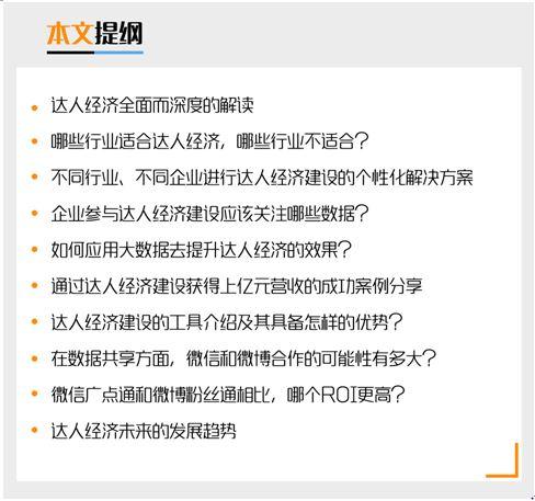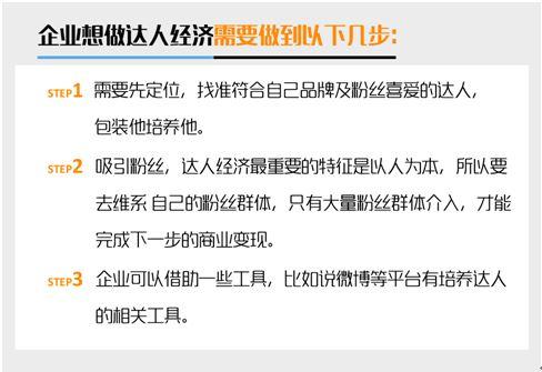 首先,需要先定位,找准符合自己品牌及粉丝喜爱的达人,包装他培养他。 第二步,吸引粉丝,达人经济最重要的特征是以人为本,所以要去维系自己的粉丝群体,只有大量粉丝群体介入,才能完成下一步的商业变现。 最后,企业可以借助一些工具,比如说微博等平台有培养达人的相关工具。 九枝兰:随着达人经济发展的火爆,也有越来越多的企业跃跃欲试,希望加入到达人经济的建设中来。针对不同行业、不同规模的企业,参与达人经济建设需要注意些什么? 王传鹏:从技术上来看,不同行业、企业的达人经济建设在方法论和工具的使用上没有太大的区别,采用相同的方法就能达到很好的效果。不同点是社交媒体上即使有很多的工具可以去帮你,但最终达人的影响力究竟能培养成多大以及实现多少商业变现还要看达人的专业度和投入度。 比如说现在微博上比较高端的网红,是二三线的明星下来做网红,他们可能一天发十条微博,他需要精心的去经营这微博怎么发,应该拍什么样的照片。 这些网红使用的工具和流程是一样的,但是对于以账号为中心的人,运营方式有一些区别,不同的企业都要去揣摩。工具只是提供统一、固定的方式方法,企业还需要了解到自己的商品定位是什么,并在达人的维护过程中、粉丝关系的维系过程中找出不同的方法来。 九枝兰:什么行业适合达人经济这种ROI较高的渠道,哪些行业不适合? 王传鹏:首先,我们一定会做非标准的行业,比如服装,美食,美妆。其次,是具有讨论性质的商品,满足这两类条件的行业在达人经济的环境下会有比较好的效果。因为达人经济需要有一个氛围,进行相应的沟通。比如服装大家会讨论这件衣服好不好看,什么款式的,值多少钱,为什么值这些钱。