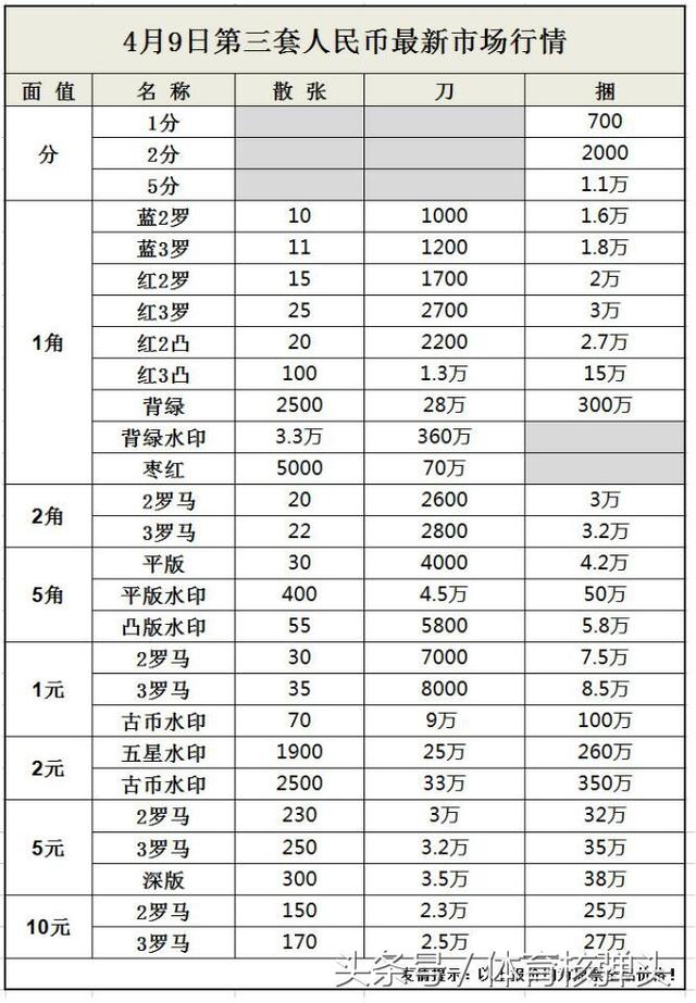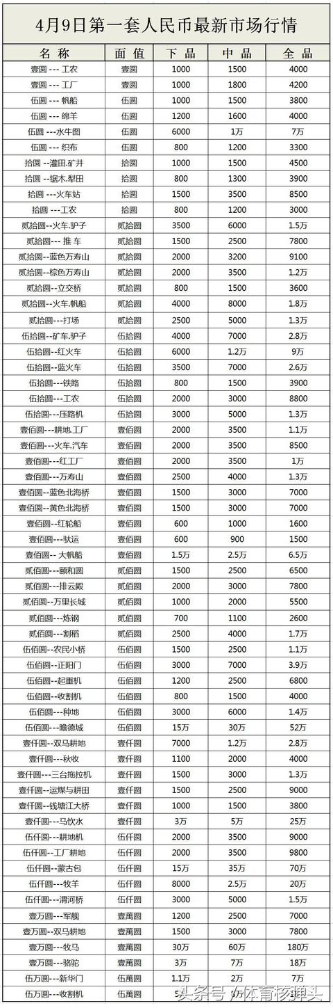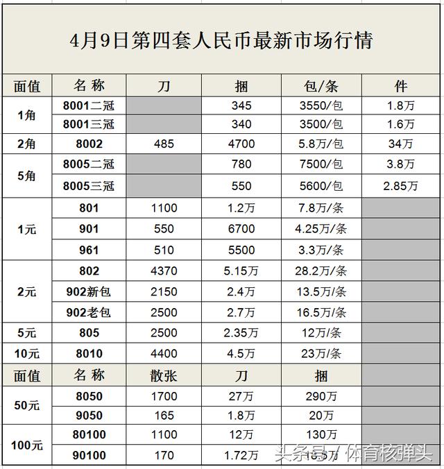体育核弹头整理了最新的人民币收藏价格,希望能为广大网友提供帮助!