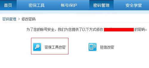 步骤三:点击找回密码后可以看到有两种修改密码的方式,一是密保工具改密,二是短信改密,按要求发送验证信息即可。