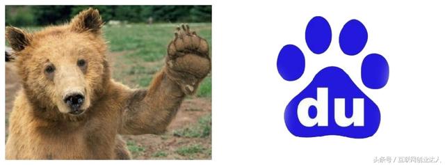 华为LOGO 百度 有人说百度的LOGO是一个熊掌,本编特意找出一张图对比了一下,确认熊的掌是五个指头,比百度的多一个。不论百度到底是熊掌还狗掌,但确定是一个动物走后留下的足记。在古代猎人打猎时,喜欢按动物足迹追寻猎物,就如同百度网页搜索技术一样,总能精准的找到目标。